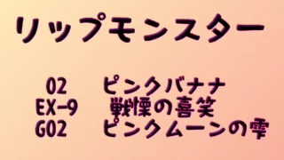 【赤み系比較】リップモンスター「02 ピンクバナナ」と限定色「EX-9」を塗り比べ!ツヤバースG02との違いも検証